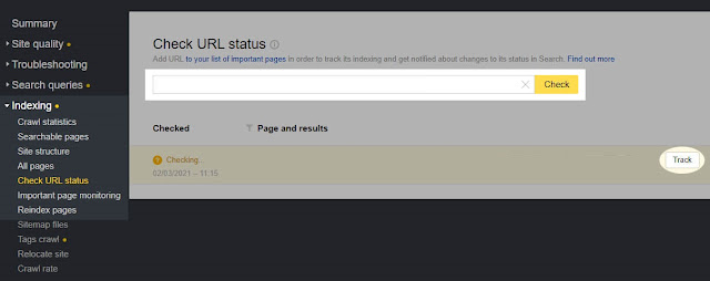 - In the Check URL Status form, enter the URL of your blog article then select Check. after the URL of your blog article appears on the list then select the track.